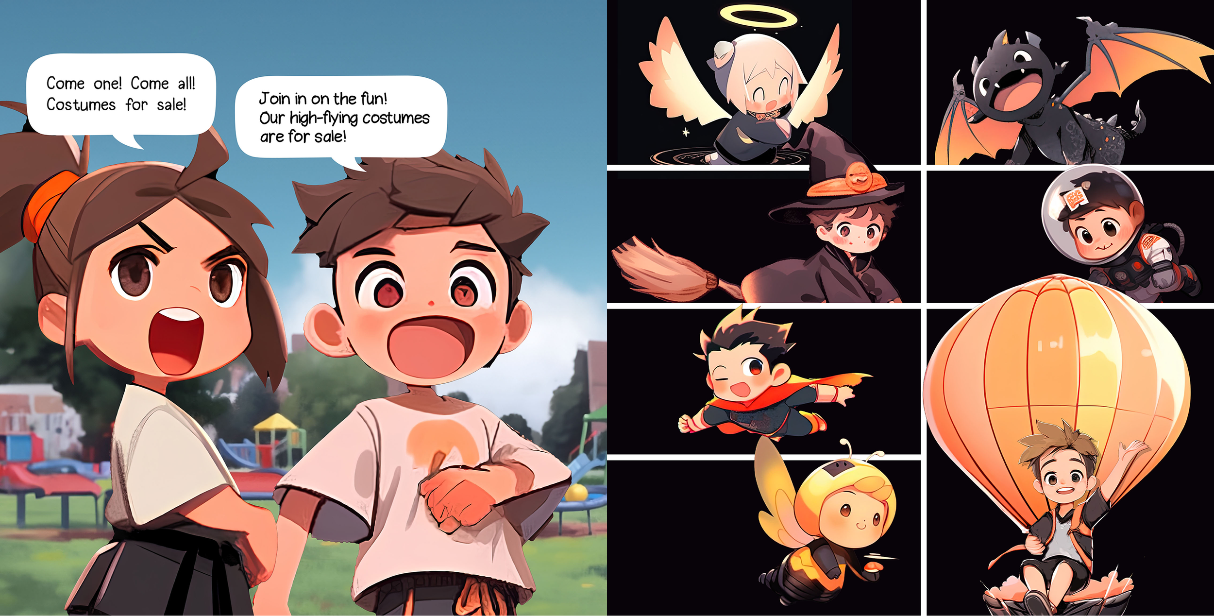 Our high-flying costumes are for sale!”
