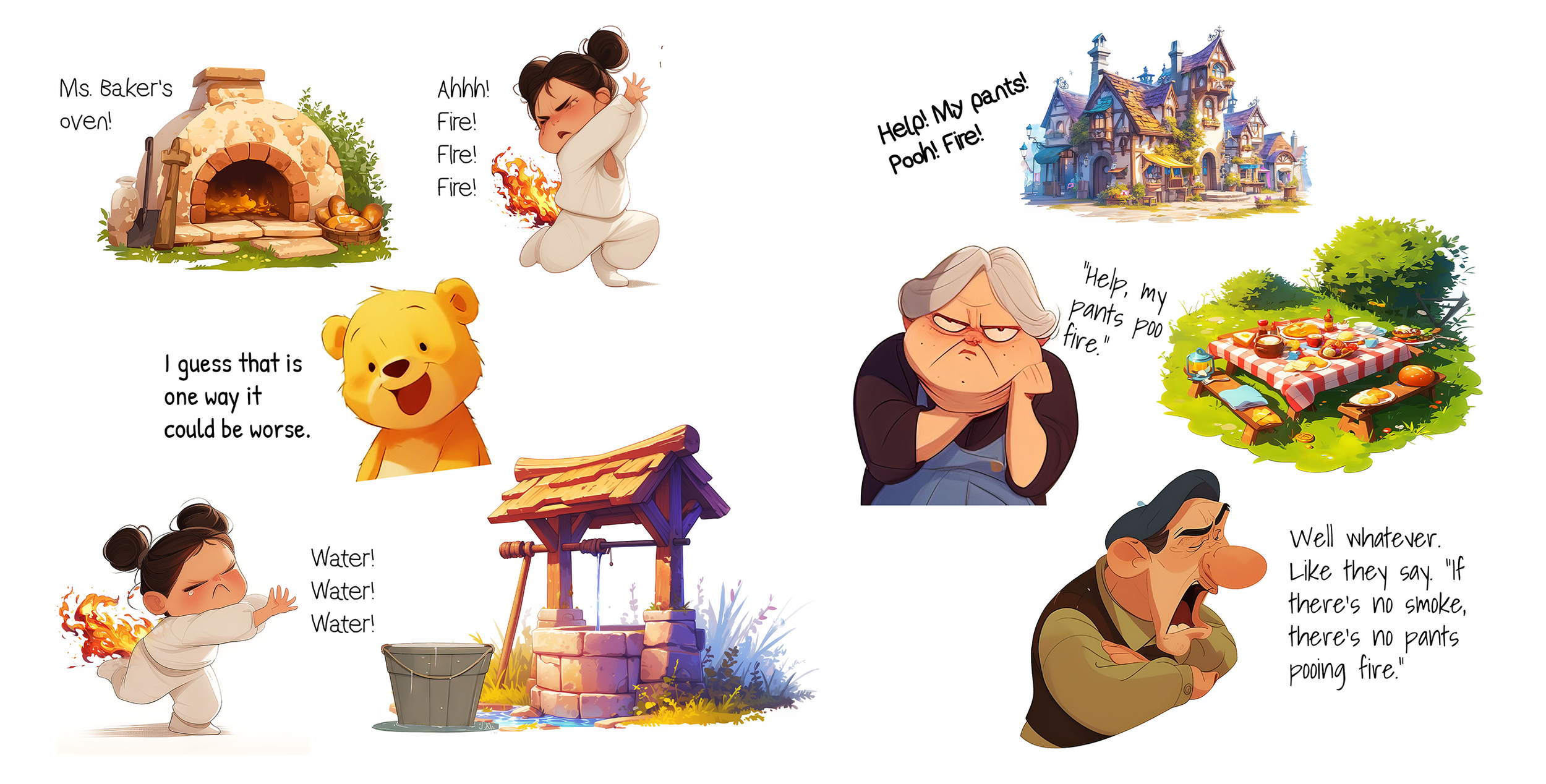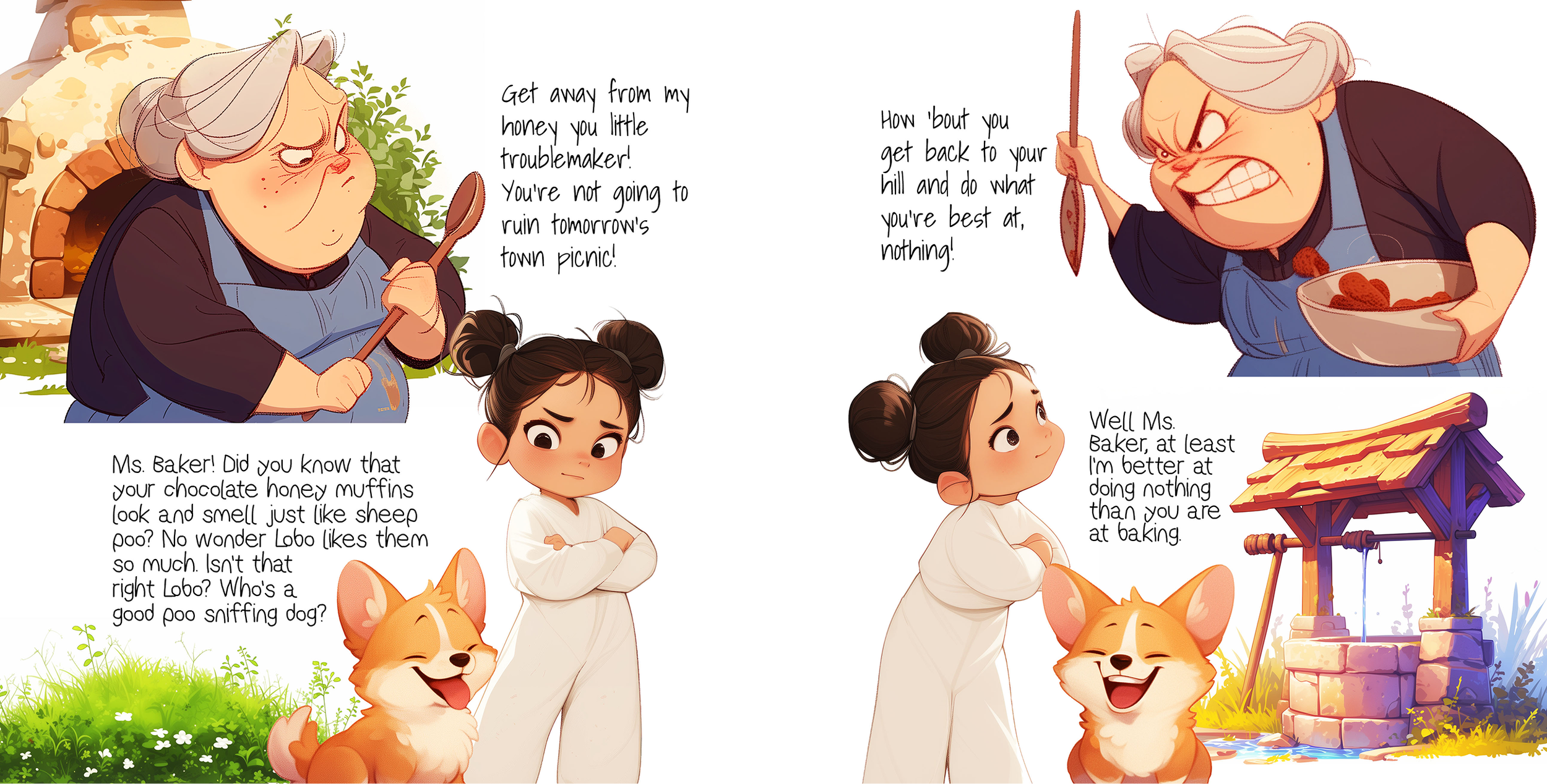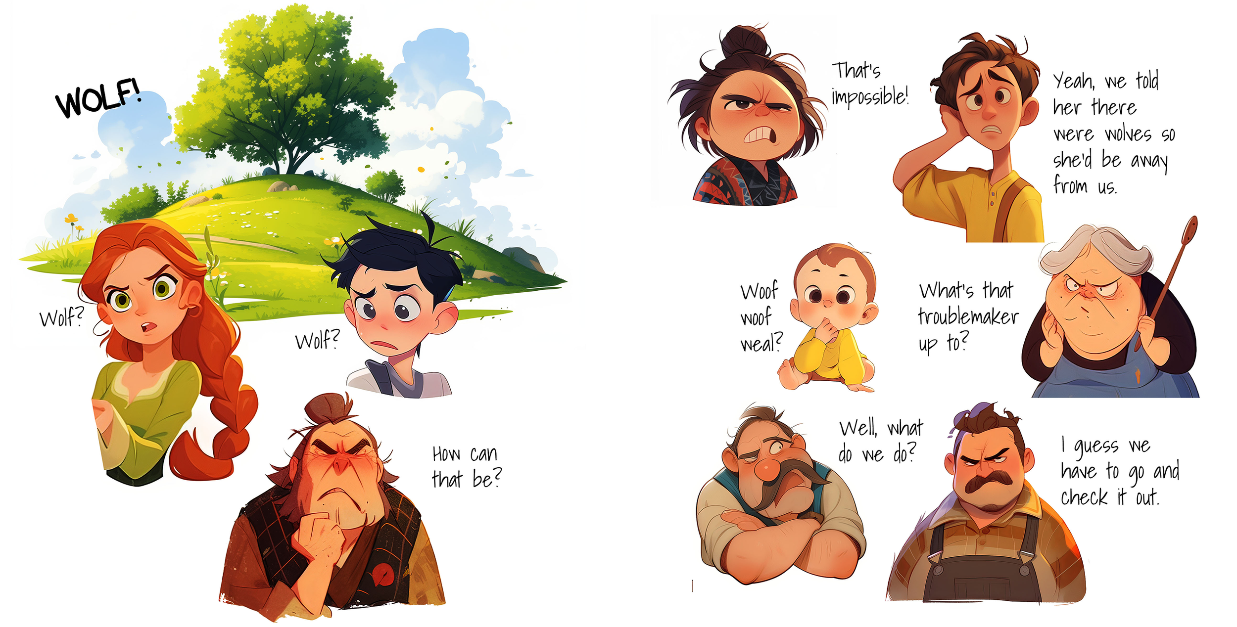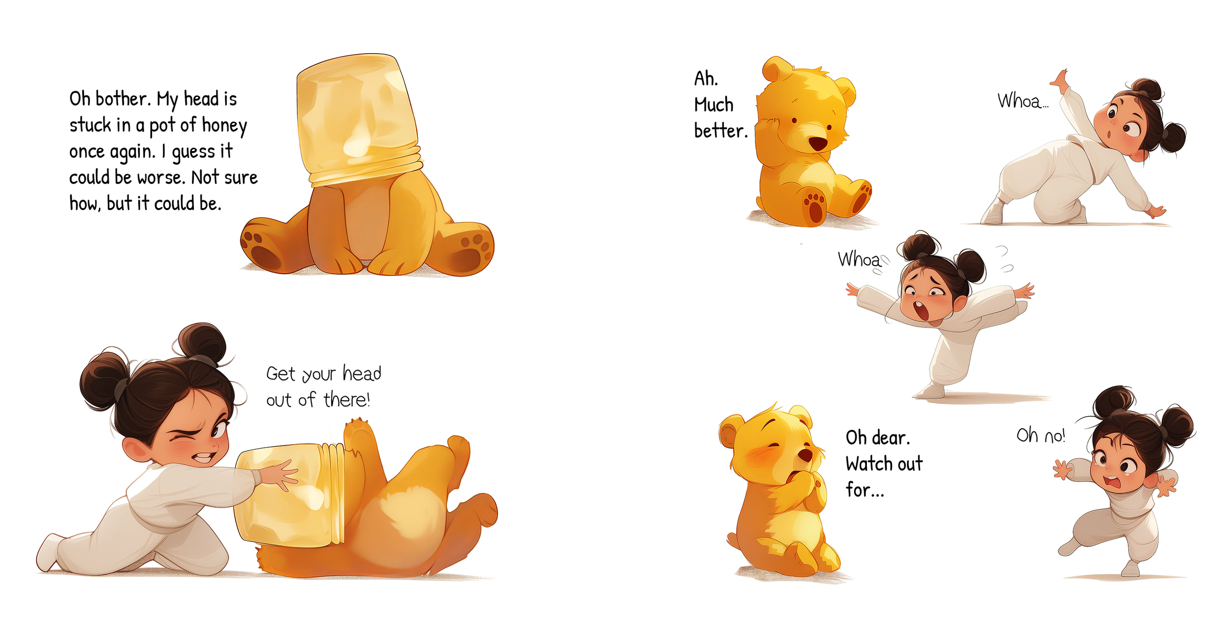 Characters, backgrounds, and expressions are composited with precise control over scale, placement, and hierarchy. The goal is clarity first: every page must communicate emotion, action, and intent instantly for early readers.