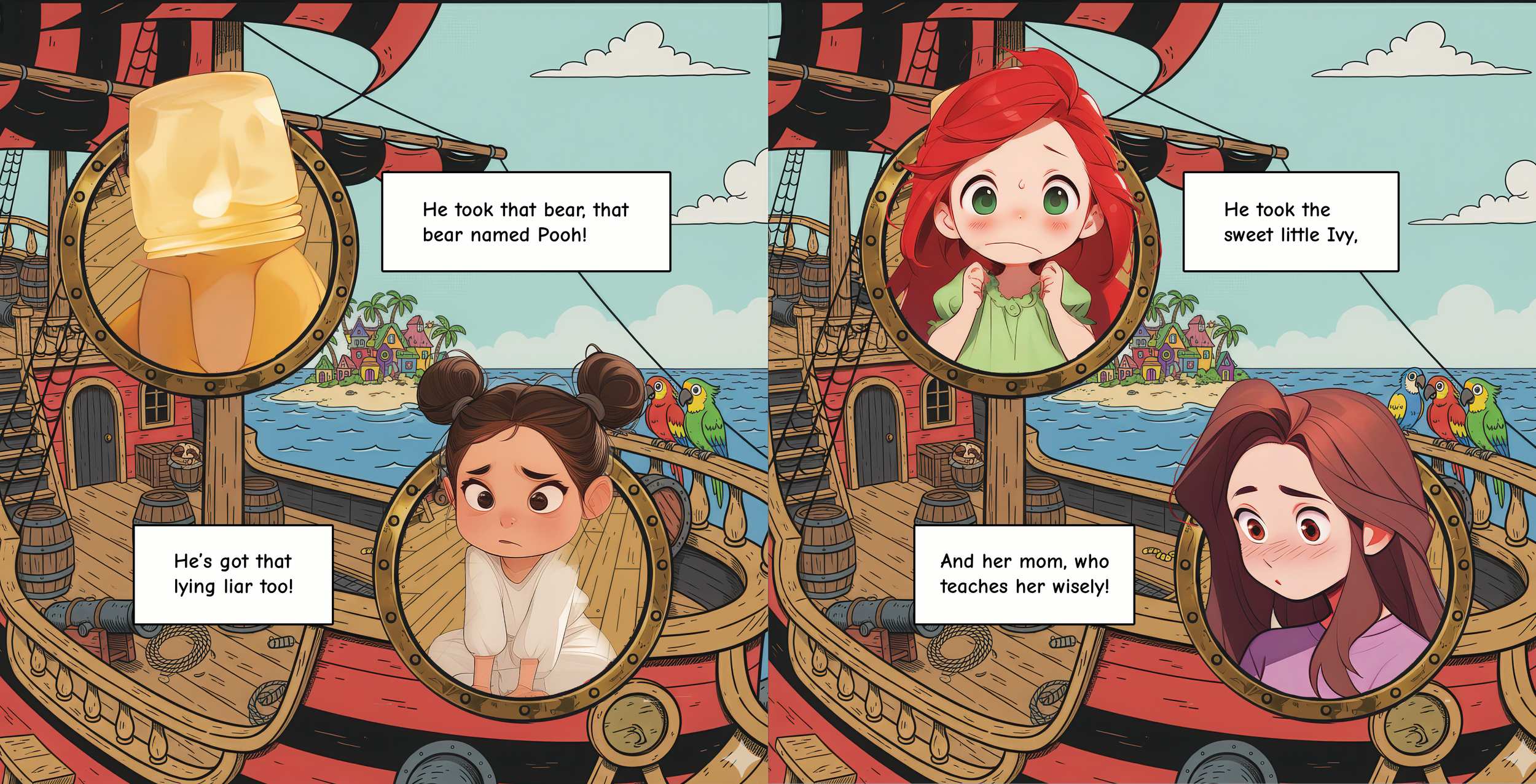 Look at who that Captain took!Hook took that bear Pooh.