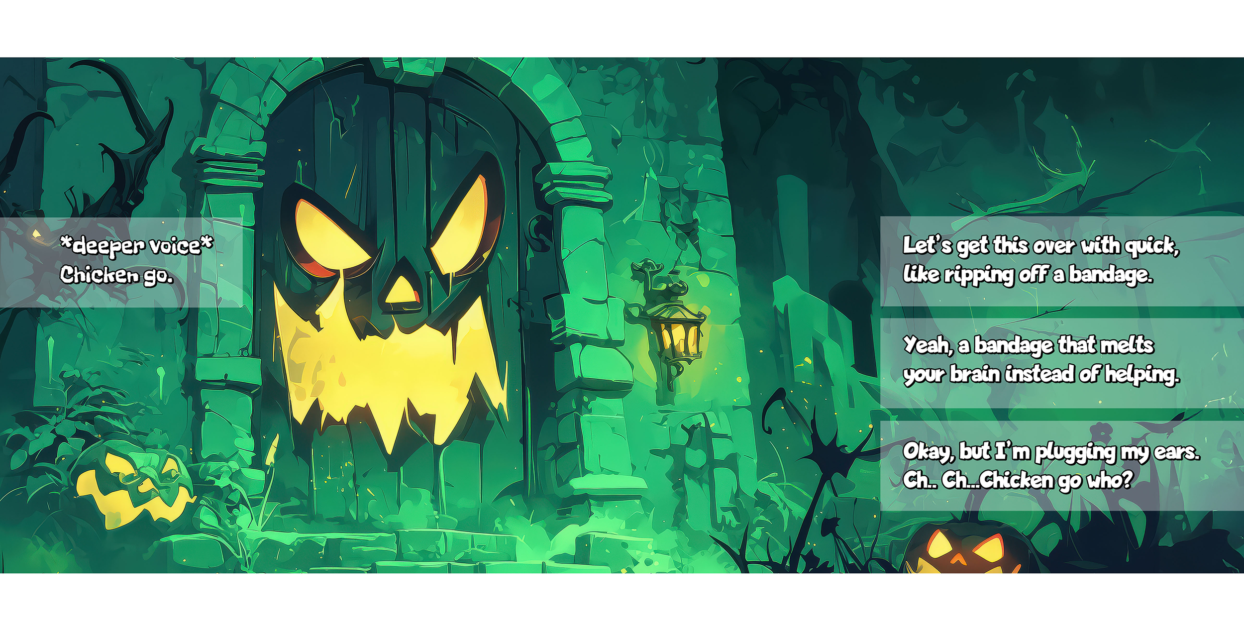 Mmmrrrgh… my guts... they're all… in a pan.I can’t believe you ate it! Oh, what a ploy!