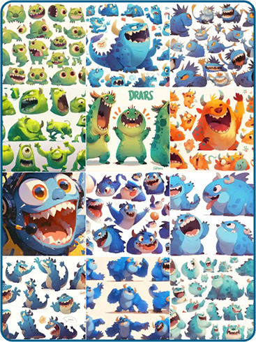 Before writing, I explore what imagery is realistically achievable. I test character designs, poses, expressions, and environments to determine what can be generated consistently and what will require manual composition. This step defines the visual language of the book and prevents late-stage rework.