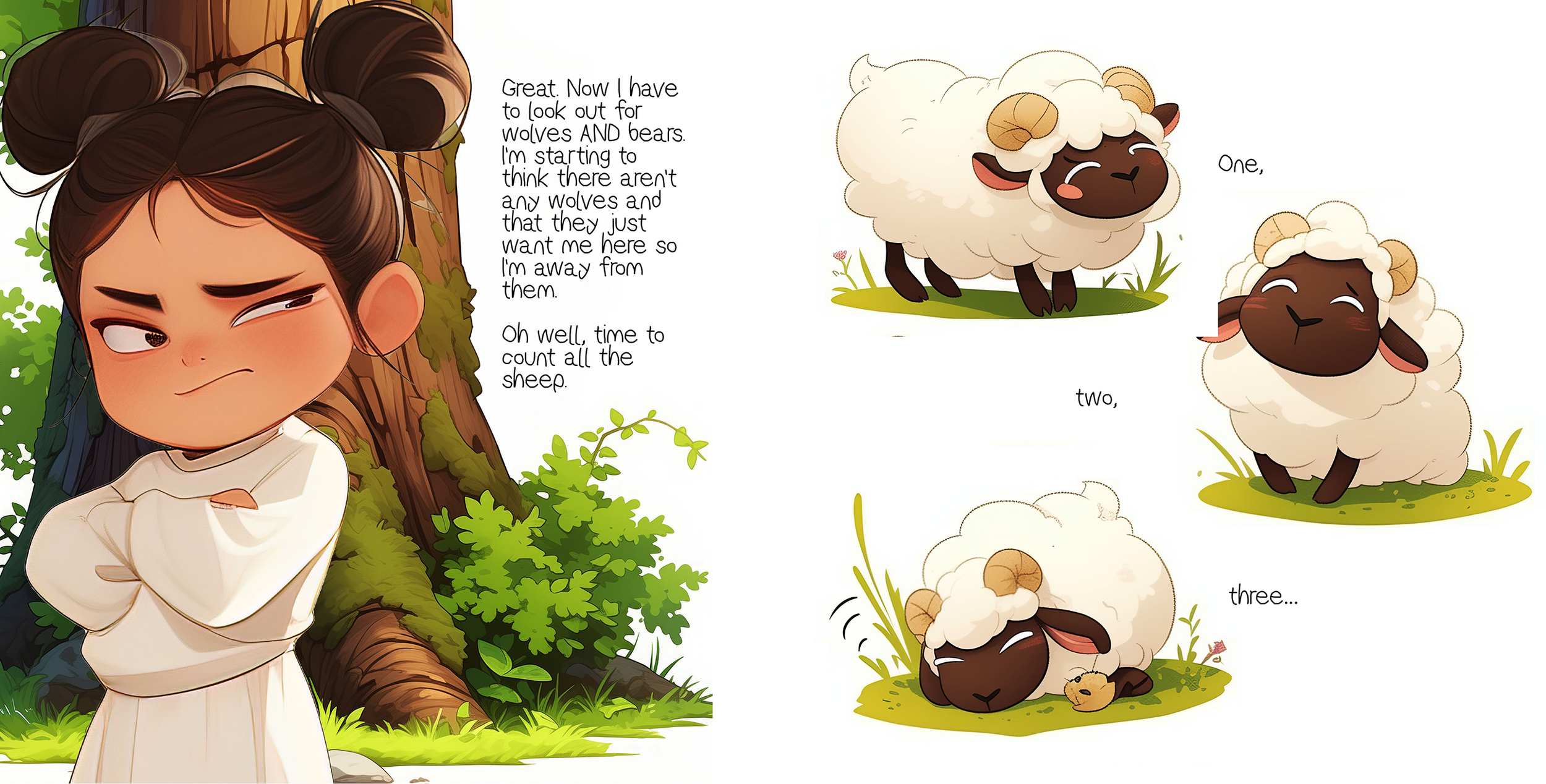 The story is written only after the visual constraints are understood. Narrative beats are shaped around images I know can be produced reliably, ensuring visual continuity and emotional clarity across all pages.