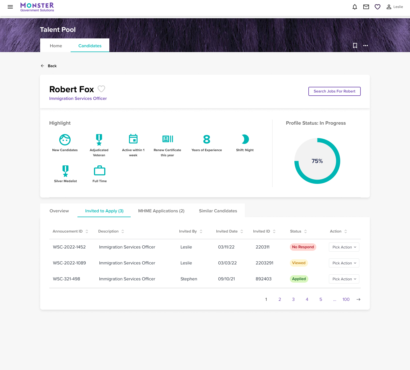 The Talent Pool and Candidate Portal improved information accuracy and let candidates manage their profiles independently, while recruiters and hiring assistants followed a clear process for reviewing and inviting applicants using automated emails and notifications. Multi-role workflows reduced miscommunication.